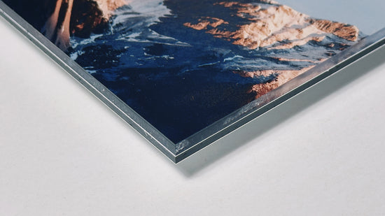 Fine Art Print unter 4 mm starkem, mattem Acrylglas verstärkt mit 3 mm starker Aludibondplatte. Auf der Rückseite mit Aluminium Aufhängeschienen versehen.